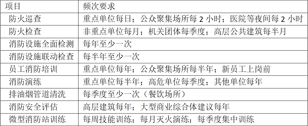 消防安全工作频次总结表